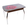 Столешница имеет размер 1 м 10 см, синхронно-раздвижной механизм “бабочка” позволяет увеличить ее еще на 30 см и увеличить количество посадочных мест. Материалы изготовления - ЛДСП, МДФ и закаленное стекло. В ассортименте варианты с цветным стеклом, с узором, с кожзамом, с фотопечатью и даже с искусственным камнем. Ножки могут быть гнутыми или прямыми, из хромированной стали или массива березы в одном из трех цветов - выбор комбинаций просто огромный.